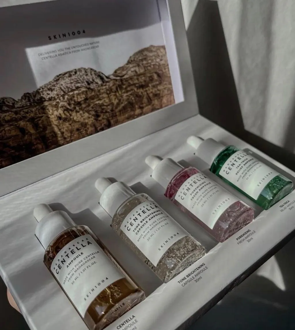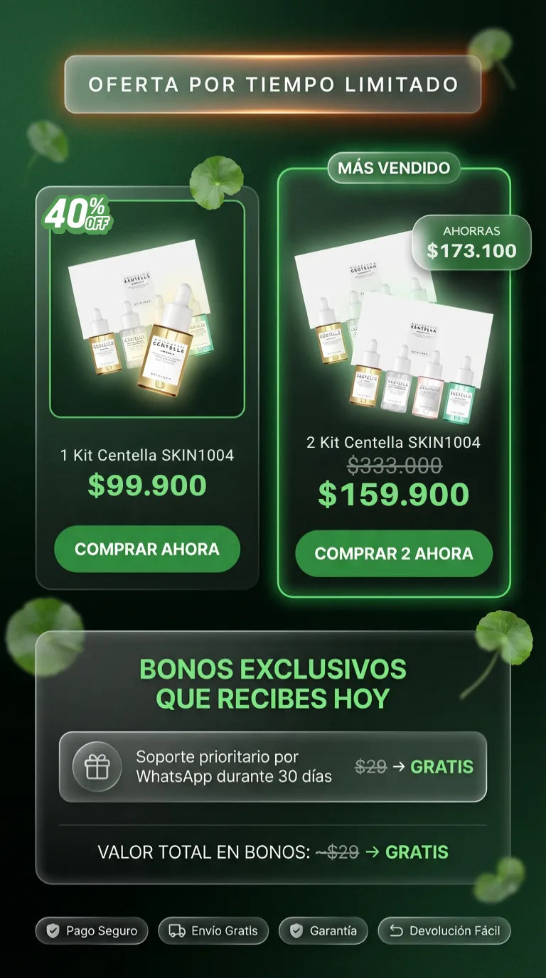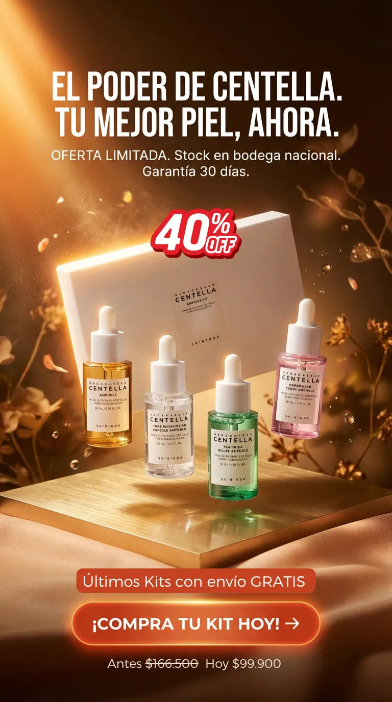 Sí, este kit contiene Centella Asiática de Madagascar, un ingrediente reconocido por sus propiedades calmantes, ideal para personas que buscan una rutina suave y reparadora.